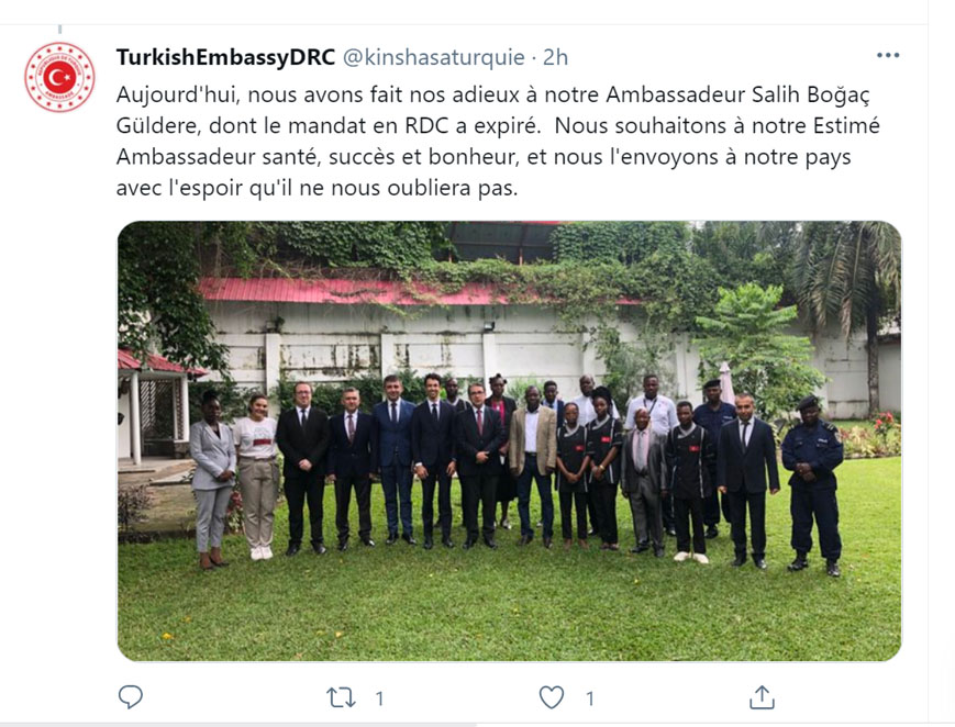 Arrivé à Kinshasa en mai 2018, Salih Bogac Güldere a regagné la Turquie hier au terme de son mandat en terre rd congolaise.