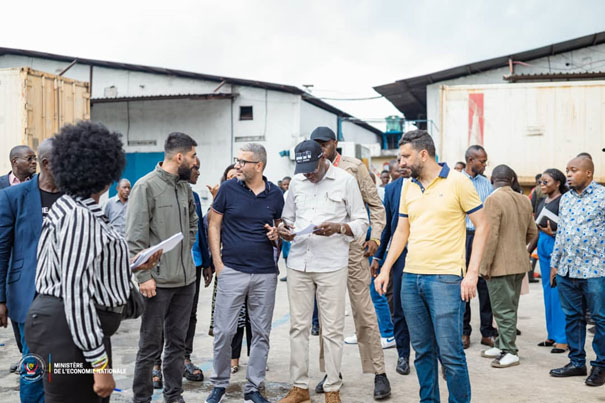 Première étape du Vice-Premier ministre en charge de l’Économie, la société G.F.C.O, sur la 12ème rue Limete Industriel, dans la commune de Limete. Sur place, il constate que la baisse des prix des poulets et poissons est bien réelle.