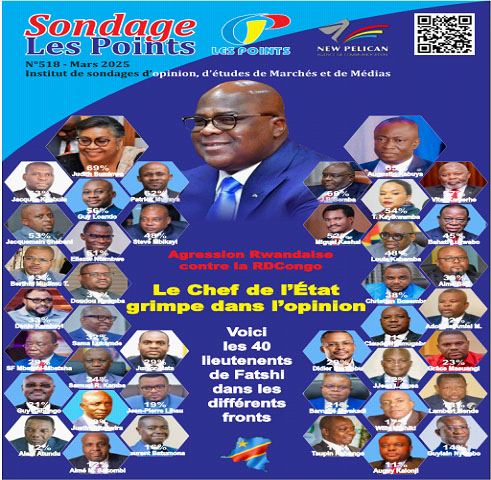 Les résultats sont éloquents. Le peuple est rangé derrière le Commandant suprême des Forces armées de la République démocratique du Congo (FARDC) et de la Police nationale, qui connait un accroissement de 4% comparativement au premier sondage sur la guerre réalisé en février dernier. 86% de la population apportent tout leur soutien au Président Félix-Antoine Tshisekedi Tshilombo. Le Chef de l'État qui consolide sa cote, est apprécié pour sa détermination à résoudre définitivement la crise sécuritaire qui dure depuis plus de trois décennies, poussée notamment par le Rwanda, friand des ressources minières de la RDC, quitte à tuer les Congolais. Dans sa large majorité (89%), les Congolais sont opposés à toute tentative de coup d'État.