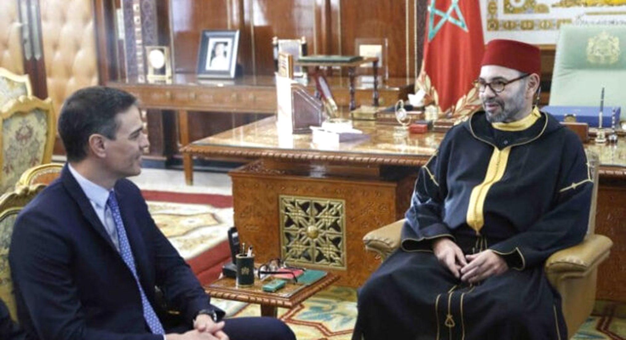 « Sa Majesté le Roi Mohammed VI, que Dieu L’assiste, a reçu ce jour, au Palais Royal de Rabat, Son Excellence Monsieur Pedro Sanchez, Président du Gouvernement Espagnol, qui effectue, à l’invitation du Souverain, une visite au Maroc dans le cadre d’une nouvelle étape de partenariat entre les Royaumes du Maroc et d’Espagne.