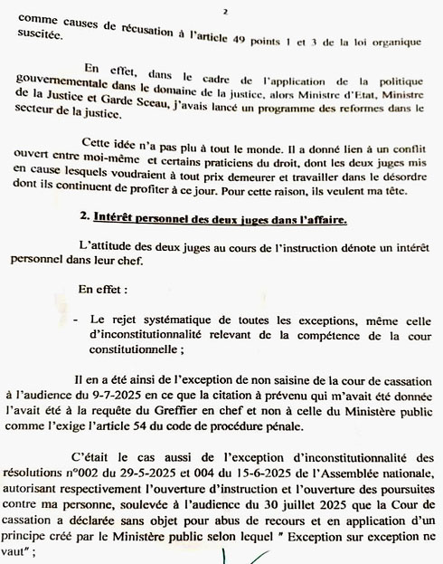 *Dans sa lettre adressée au greffier en chef de la Cour de Cassation, l'ex-Garde des sceaux congolais motive sa décision, entre autres par un fâcheux antécédent avec les deux juges, alors qu'il était aux affaires.