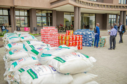 Conduite par son Directeur Général, M. William Kazumba, la délégation de l’OGEFREM a remis aux Forces Armées de la République Démocratique du Congo (FARDC) un lot composé de 200 sacs de riz, 300 bidons d’huile de 5 litres, 100 cartons de conserves et 200 cartons de poissons salés. À ce don matériel, s’ajoute un chèque d’un million de dollars américains (1.000.000 USD), versé au fonds de soutien aux FARDC, géré de manière conjointe par les ministères du Budget et des Finances.