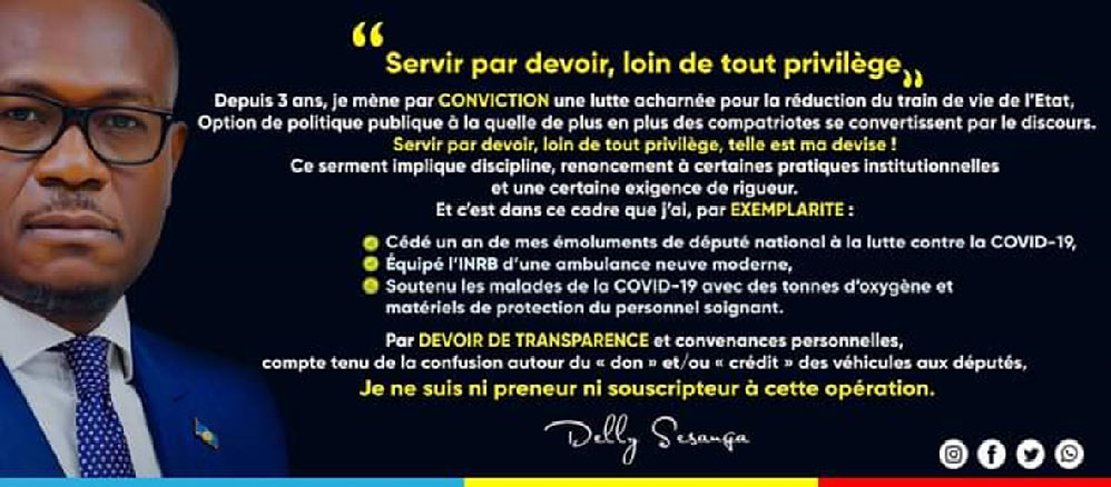 500 véhicules pour les députés : “Don ou crédit”, Delly Sesanga se dit ni preneur ni souscripteur