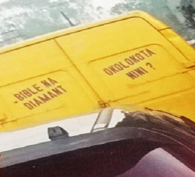 Bible na diamant okolokota nini ? Littéralement cette phrase veut dire : " Entre la Bible et le diamant, que ramasserais-tu?". En d'autres termes, entre une Bible et un diamant, que ramasseras-tu s'il t'arrivait à en rencontrer sur ton chemin ?