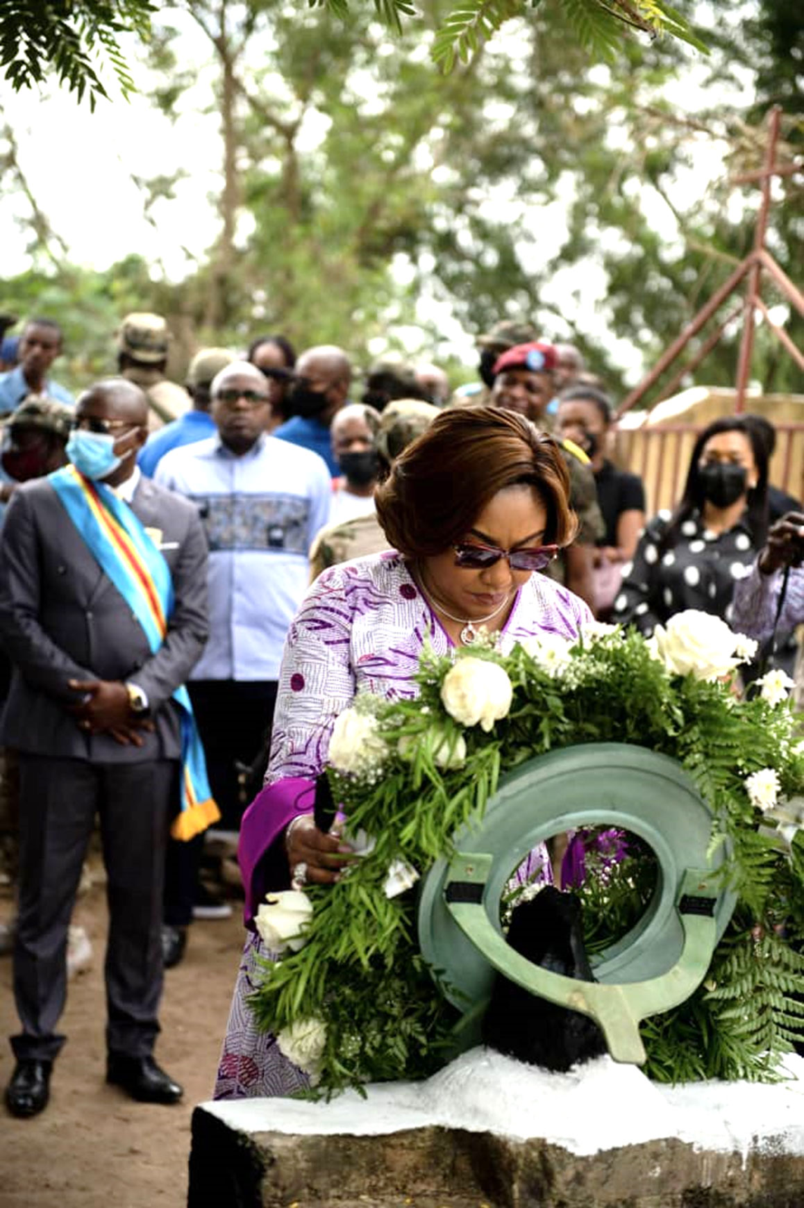 Hommage aux martyrs du conflit rwando-ougandais à Kisangani Faire corps avec l’histoire douloureuse et inoubliable des martyrs du conflit rwando-ougandais, c’est dans cette perspective que la Première Dame de la République s’est rendue au cimetière où reposent ces derniers afin d’honorer leur mémoire.