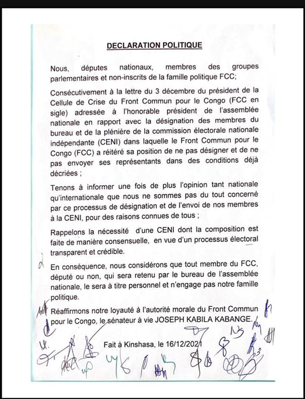 CENI : Le FCC refuse d’occuper les postes vacants