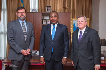 En prélude de la Cop 26 qui se tiendra à Glasgow en Ecosse au mois de novembre de l’année en cours, le Ministre d’Etat, Ministre de l’Aménagement du Territoire, Me Guy Loando Mboyo, a présidé le mardi 05 octobre, une importante séance de travail avec une délégation américaine conduite par l’Envoyé spécial adjoint du Président américain en charge du changement climatique, Dr Jonathan Pershing accompagné de l’ambassadeur américain, Mike Hammer.