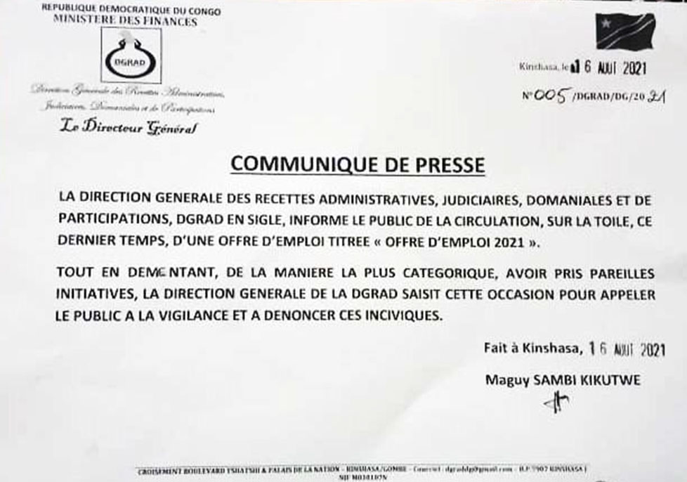 Le Gouvernement et la BCC rassurent : "Le mois d'avril s'exécute sans aucun retard dans le paiement des fonctionnaires"