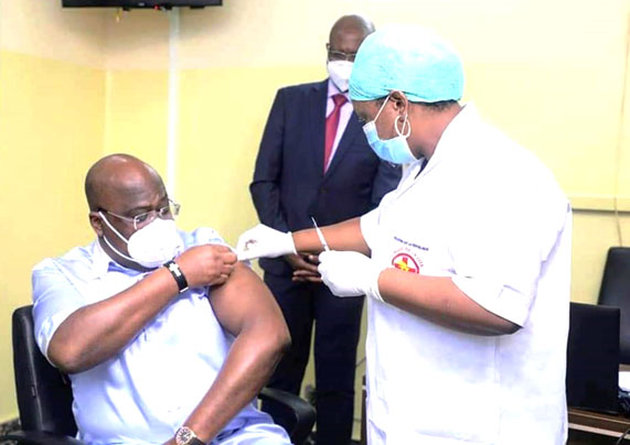 Occasion pour l’équipe médicale d’évaluer leurs signes vitaux et de s’assurer des formalités administratives d’usage. Le chef de l’Etat et la première dame ont reçu, chacun, une piqûre du vaccin à l’épaule gauche en présence du ministre de la Santé publique, Hygiène et Prévention, Dr Mbungani. Etaient également présents le Conseiller spécial du Président chargé de la couverture maladie universelle, Dr Roger Kamba et le Médecin Directeur de la Clinique présidentielle de la cité de l’UA, Dr Kangudia.