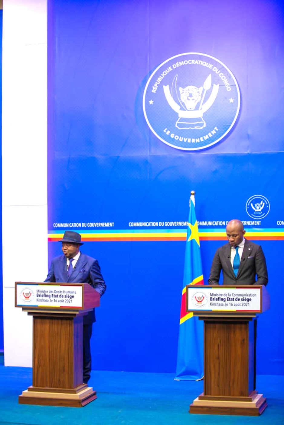 Le ministre de la Communication et Médias, Patrick Muyaya et son collègue des Droits humains, Fabrice Puela, ont organisé conjointement un briefing hier lundi 16 août avec un focus sur la situation des droits humains durant l’état de siège dans les provinces du Nord-Kivu et de l’Ituri.