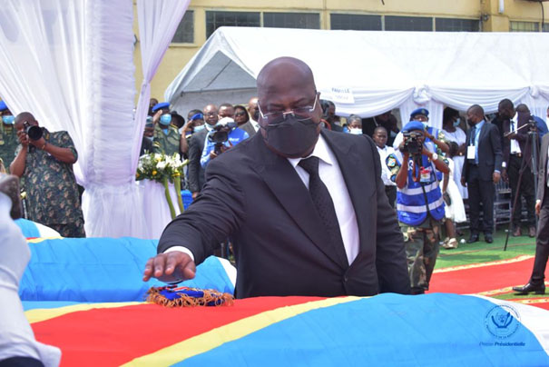 Le Président de la République, Félix-Antoine Tshisekedi a rendu hommage aux militaires FARDC dont 6 officiers qui ont trouvé la mort dans un double crash d’hélicoptères Bell 205, survenu entre le 28 et le 30 décembre 2020 à Bafwasende dans la province de la Tshopo. C’était au cours d’une cérémonie solennelle d’hommage organisée avant la mise en terre de ces vaillants soldats au cimetière Nécropole 2, le samedi 14 août courant.