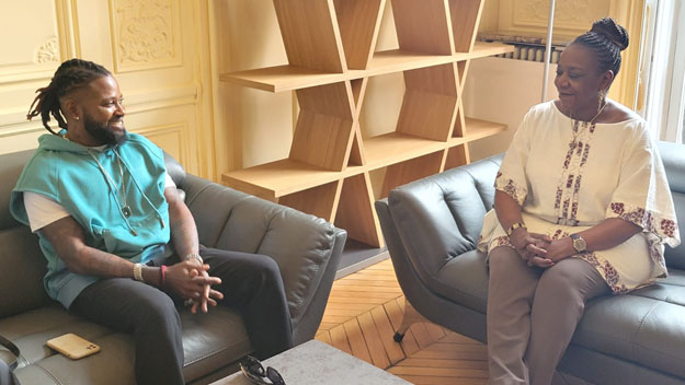 L’artiste musicien congolais Ferré Gola hume à nouveau l’air de la liberté. Reçu en audience hier jeudi 8 septembre à Paris, il a tenu à témoigner sa reconnaissance à l’égard de Mme Isabel Machik Tshombe, l’ambassadeure de la République démocratique du Congo en France, qui l’a soutenu pendant son incarcération. La star congolaise était accompagnée de son manager, Mme Haya Mvita.
