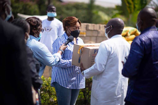 C’est vers midi que le cortège de la Première Dame s’est arrêté à l’Hôpital Kyeshero de Goma où elle a remis 2,6 tonnes de médicaments à la Division Provinciale de la santé du Nord-Kivu (DPS-NK) ,une distribution pour différents centres de santé en besoin afin d’assurer une bonne prise en charge médicale en cette période de crise. Le personnel de l’hôpital ainsi que celui de la DPS-NK ont reçu en outre,des vivres, don de la FDNT.