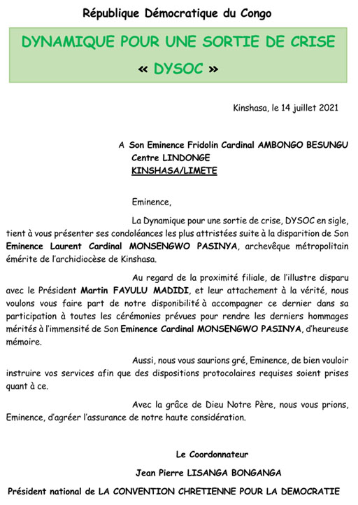 La Dysoc demande à y prendre part aux côtés de Fayulu