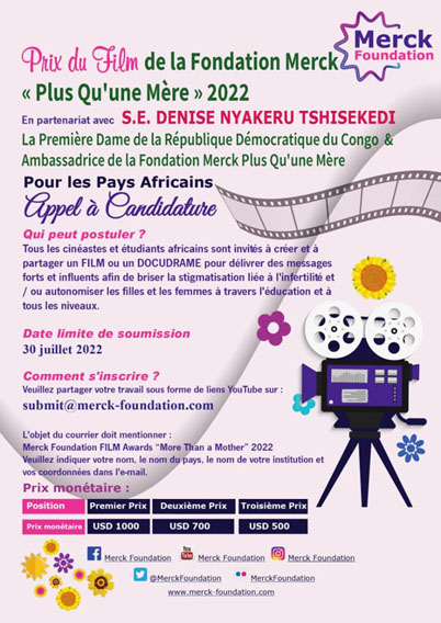 En vue de sensibiliser sur des sujets tels que : l’autonomisation des filles, la prévention à l’infertilité, la lutte contre les stigmatisations liées à l’infertilité ou encore la prévention face à la pandémie de Covid-19, la Fondation Merck lance une série de concours couronnés par de divers prix. A savoir : Prix de Reconnaissance des Médias d’Afrique de la Fondation Merck » Plus Qu’une Mère « ; Prix de Reconnaissance des Médias » Portez les Masques Avec Soin » de la Fondation Merck; Prix du Film de la Fondation Merck » Plus Qu’une Mère « ; Prix de la Chanson de la Fondation Merck » Plus Qu’une Mère « ;