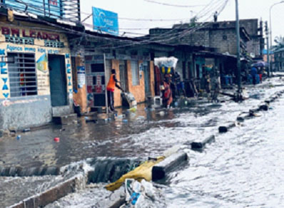 À chaque forte pluie, une scène familière se déroule dans de nombreux quartiers de Kinshasa : les rues deviennent des cours d'eau, l'activité ralentit, les commerces sont inondés et les habitants peinent à naviguer dans les courants improvisés. La photographie, prise hier dans une rue animée de la capitale, illustre le défi urbain persistant : la vulnérabilité persistante de la ville aux inondations.
