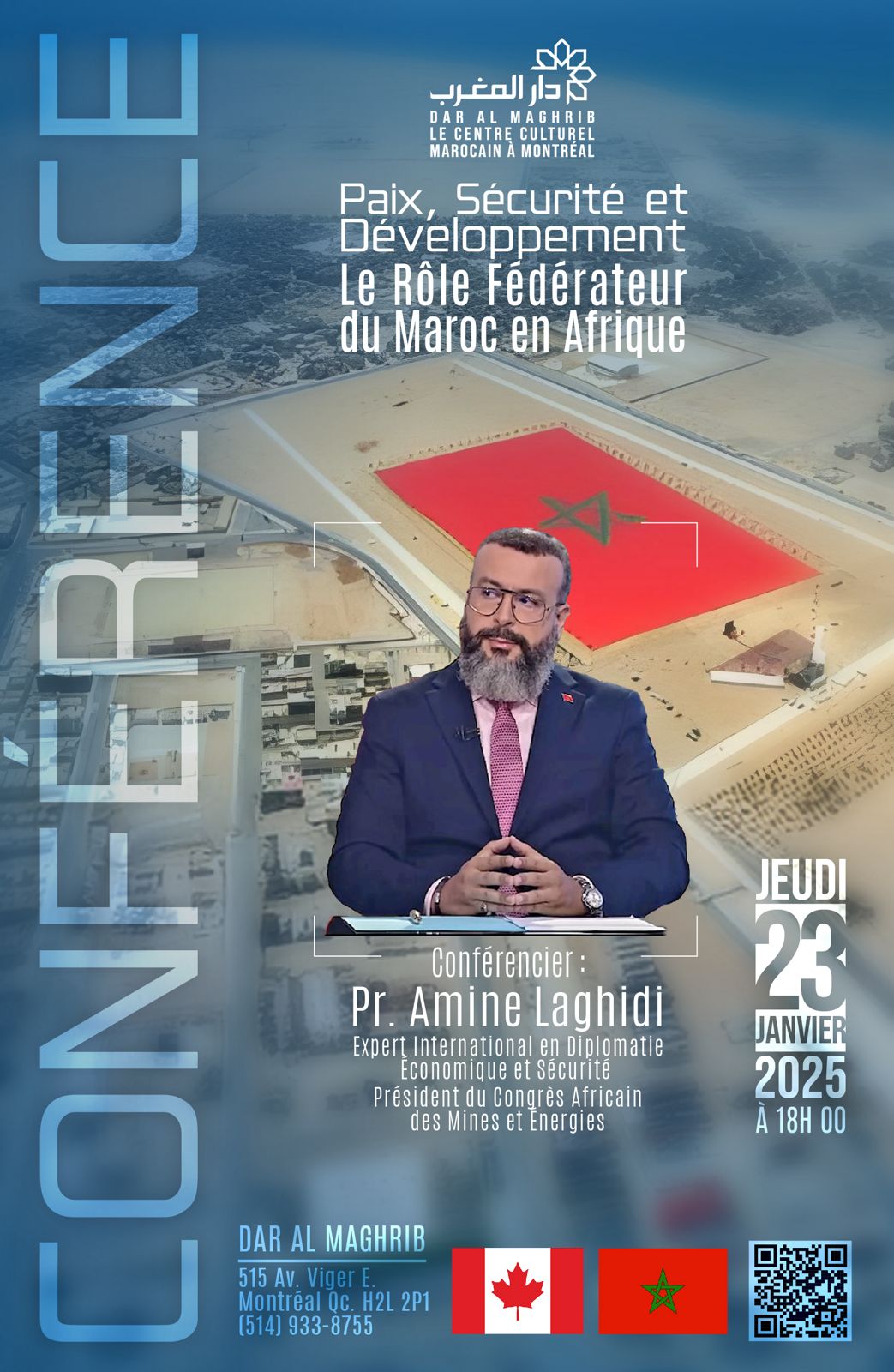 Montréal, 25/01/2025 (MAP) - Le rôle fédérateur et stratégique du Maroc en Afrique et sa contribution au renforcement de la paix et du codéveloppement sur le continent ont été au centre d’une conférence organisée à Montréal.