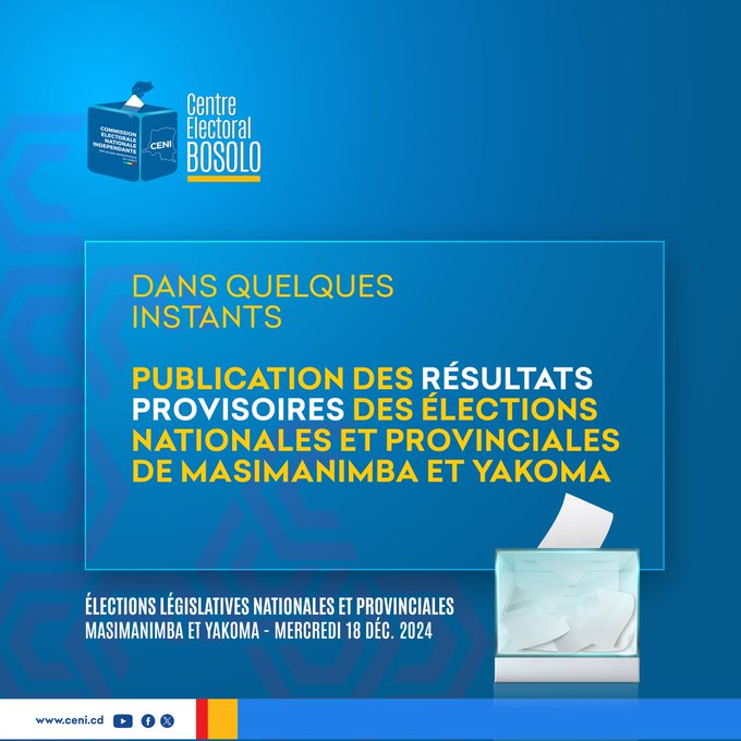 La Commission Électorale Nationale Indépendante (CENI) a dévoilé les résultats provisoires des législatives de Yakoma et Masimanimba mercredi 18 décembre 2024.