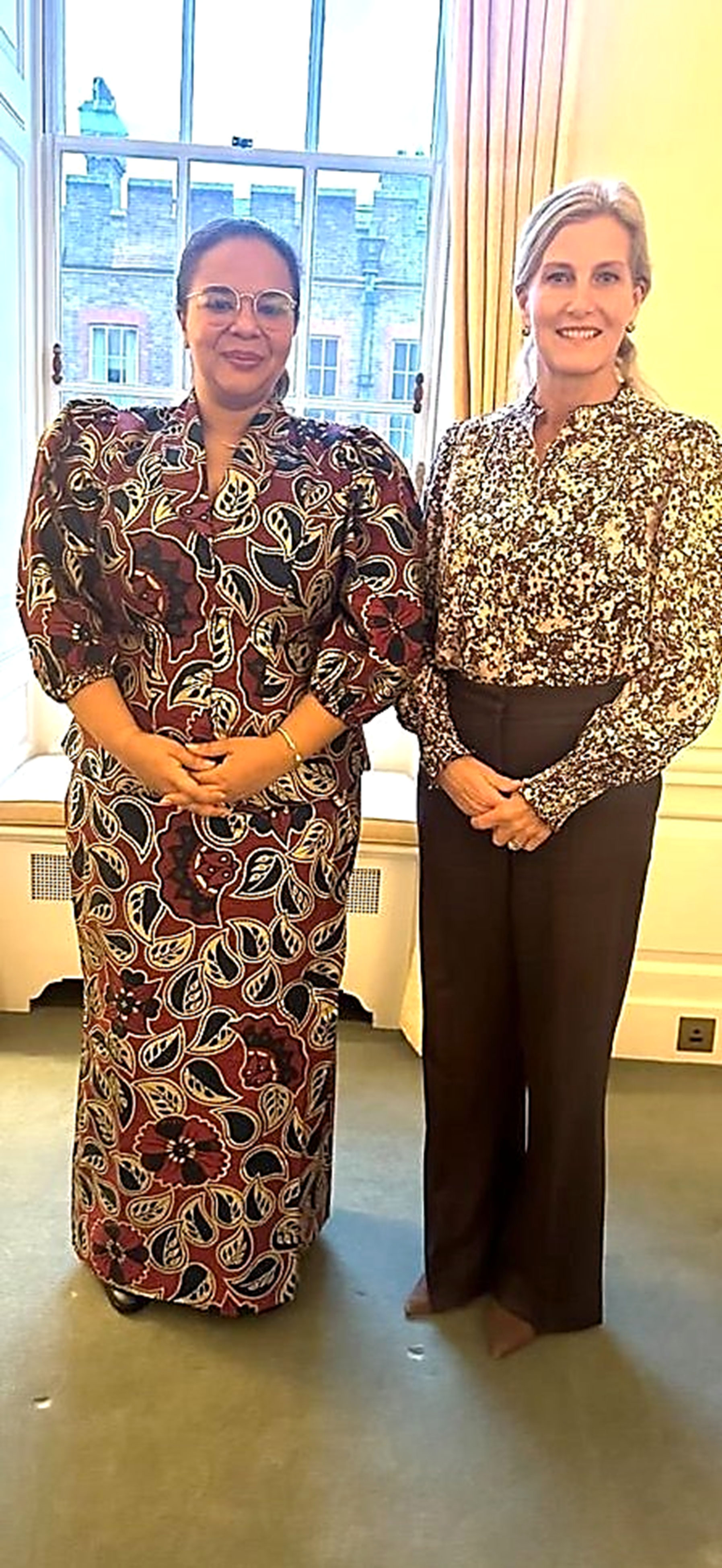 Sans se lasser, la ministre d’Etat en charge des Affaires étrangères a eu une séance de travail très enrichissante avec la Duchesse d’Edimbourgh. Celle-ci avait visité la RDC il y a quelques années (Kinshasa et Bukavu) et soutient l’Hôpital de Panzi en facilitant un partenariat entre Panzi et certaines universités britanniques dans le domaine des techniques chirurgicales pour traiter les cicatrices, souvent sources de stigmatisation.