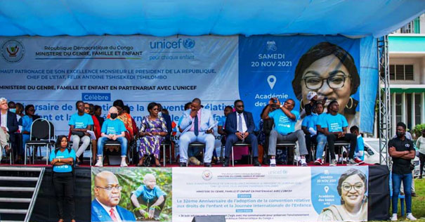 Le monde a célébré le samedi 20 novembre, la journée de l’enfance. Occasion de célébrer le 32ème anniversaire de l’adoption de la Convention relative aux droits de l’enfant. A Kinshasa, le ministère du Genre, Famille et Enfant en partenariat avec l’UNICEF, a organisé une cérémonie, au terrain de l’Académie des beaux-arts sous le thème : » Je suis adolescent, je m’engage et j’agis avec ma communication pour préserver l’environnement de la RDC« .