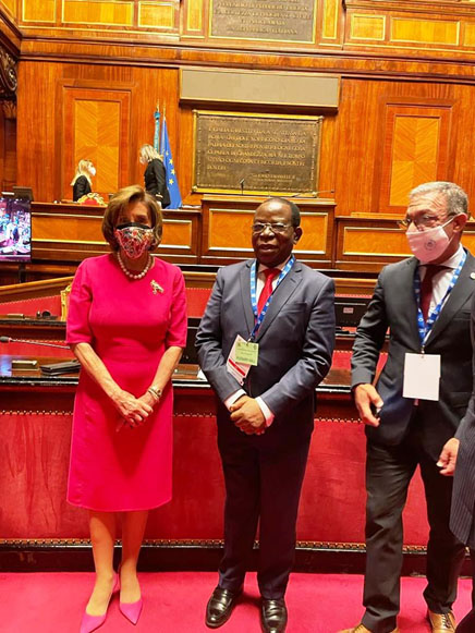 Grâce à la diplomatie agissante de Modeste BAHATI, le sénat de la RDC retrouve sa place sur le plan international. Le président de la Chambre haute du Parlement congolais vient d’en donner encore la preuve en prenant part, du 7 au 9 octobre 2021, en Italie, précisément à Rome, à la réunion des présidents des parlements du G20.