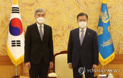 SEOUL, 22 juin (Yonhap) — Le président Moon Jae-in a demandé ce mardi à l’administration de Joe Biden de reprendre les pourparlers avec la Corée du Nord lors d’une réunion avec Sung Kim, envoyé spécial de Washington pour les affaires nord-coréennes.