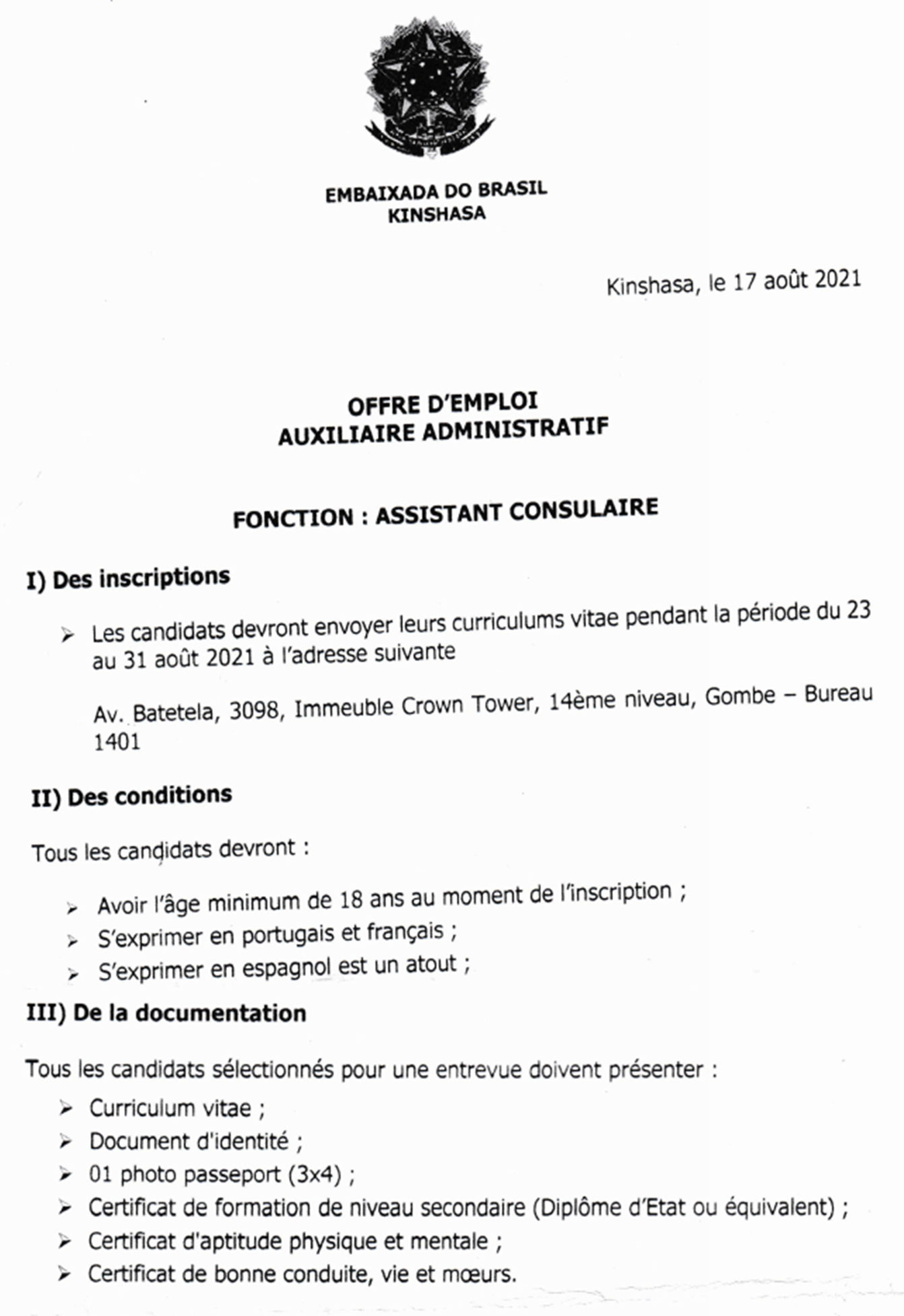OFFRE D’EMPLOI AUXILIAIRE ADMINISTRATIF
