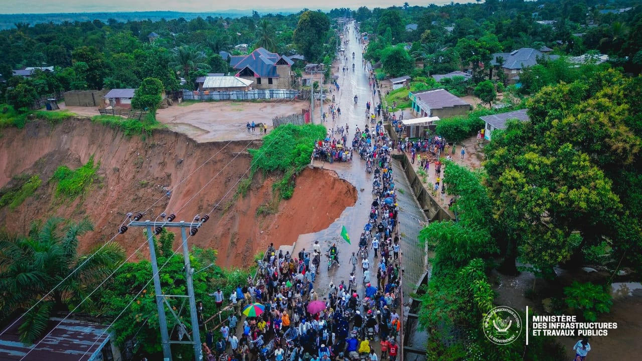 Dépêché sur instruction du président Félix Tshisekedi, le ministre des ITPR s’est rendu directement sur le site sinistré, notamment dans la commune de Nzinda, où une importante route d’approvisionnement a été littéralement coupée en deux par une érosion aggravée par les intempéries.