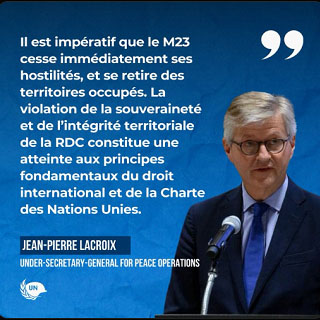 Le SGA, chef du maintien de la paix de l'ONU, a salué le courage des Casques bleus de la MONUSCO et exhorté le Conseil de Sécurité à fournir "une réponse ferme" pour "trouver une solution durable à la crise actuelle".