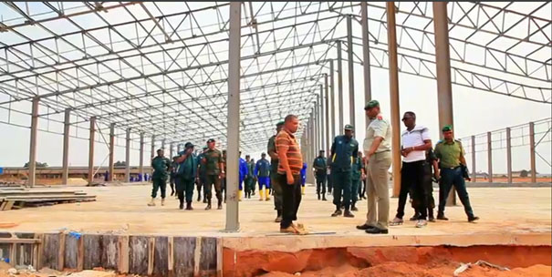 Botte poussiéreuse et regard perçant, le lieutenant général Kasongo était lui-même sur le terrain le mercredi 24 septembre. Entre les poutres dressées et les équipes de montage galvanisées, il inspectait chaque détail de l’avancement. Car l’échéance est claire : l’atelier doit ouvrir ses portes avant le 31 décembre. «Pas un jour de plus», martèle-t-il.