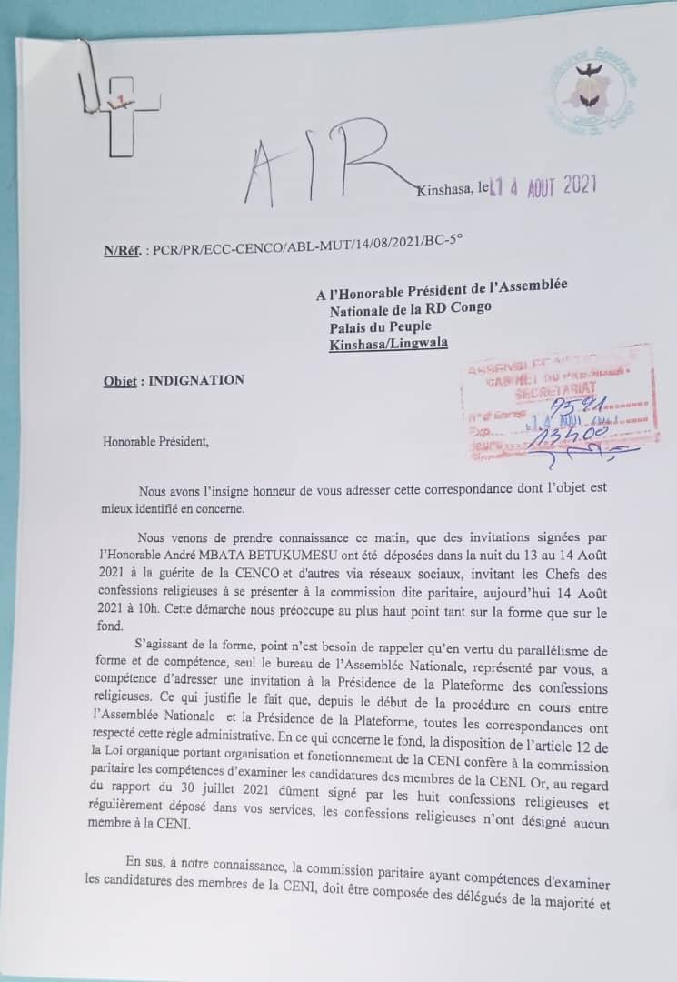 « L’honorable président de l’Assemblée nationale informe le peuple congolais qu’un délai de 72 heures a été accordé aux confessions religieuses en vue de dégager un consensus au sujet de la désignation du président de la CENI et d’un membre de la plénière », a annoncé Joseph Lembi Libula.