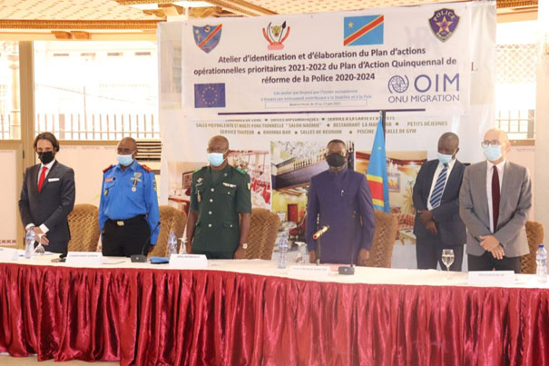 Le Vice-Premier ministre, Ministre de l’Intérieur et Sécurité, Décentralisation et Affaires coutumières, Daniel Aselo Okito, a procédé, le mardi 15 juin 2021, à Kinshasa, à l’ouverture de » l’atelier d’identification et d’élaboration du plan d’actions opérationnelles prioritaires 2021-2022 du plan d’action quinquennal de la réforme de la police 2020-2024 « . Organisé en partenariat avec l’Organisation Internationale pour les Migrations (OIM), ce forum de trois jours est financé par l’Union européenne à travers son Instrument contribuant à la Stabilité et la Paix.