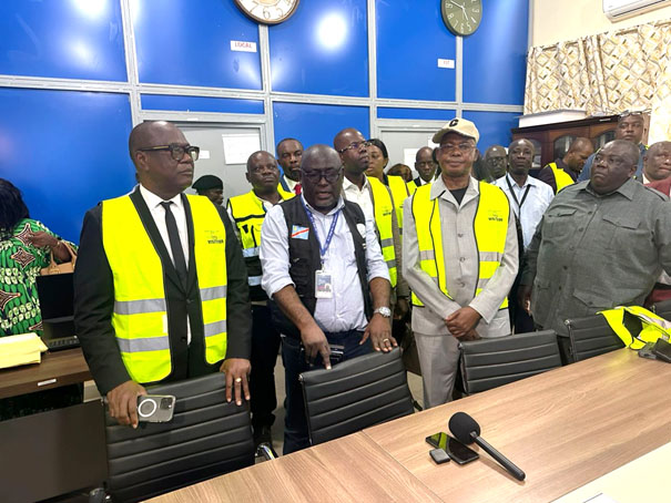 Au cours de cette descente sur le terrain, le commandant de l'aéroport de Ndjili, Jean Pierre Ngondo, a présenté un aperçu global de la situation actuelle de la plateforme, notamment l'état des infrastructures opérationnelles, les travaux réalisés et ceux en cours d'exécution, les dispositifs de sûreté et de contrôle d'accès, les systèmes d'alimentation énergétique, le fonctionnement de l'aérogare modulaire, la chaîne de traitement des passagers et des bagages ainsi que les projets structurants visant la sécurisation des entreprises aéroportuaires.