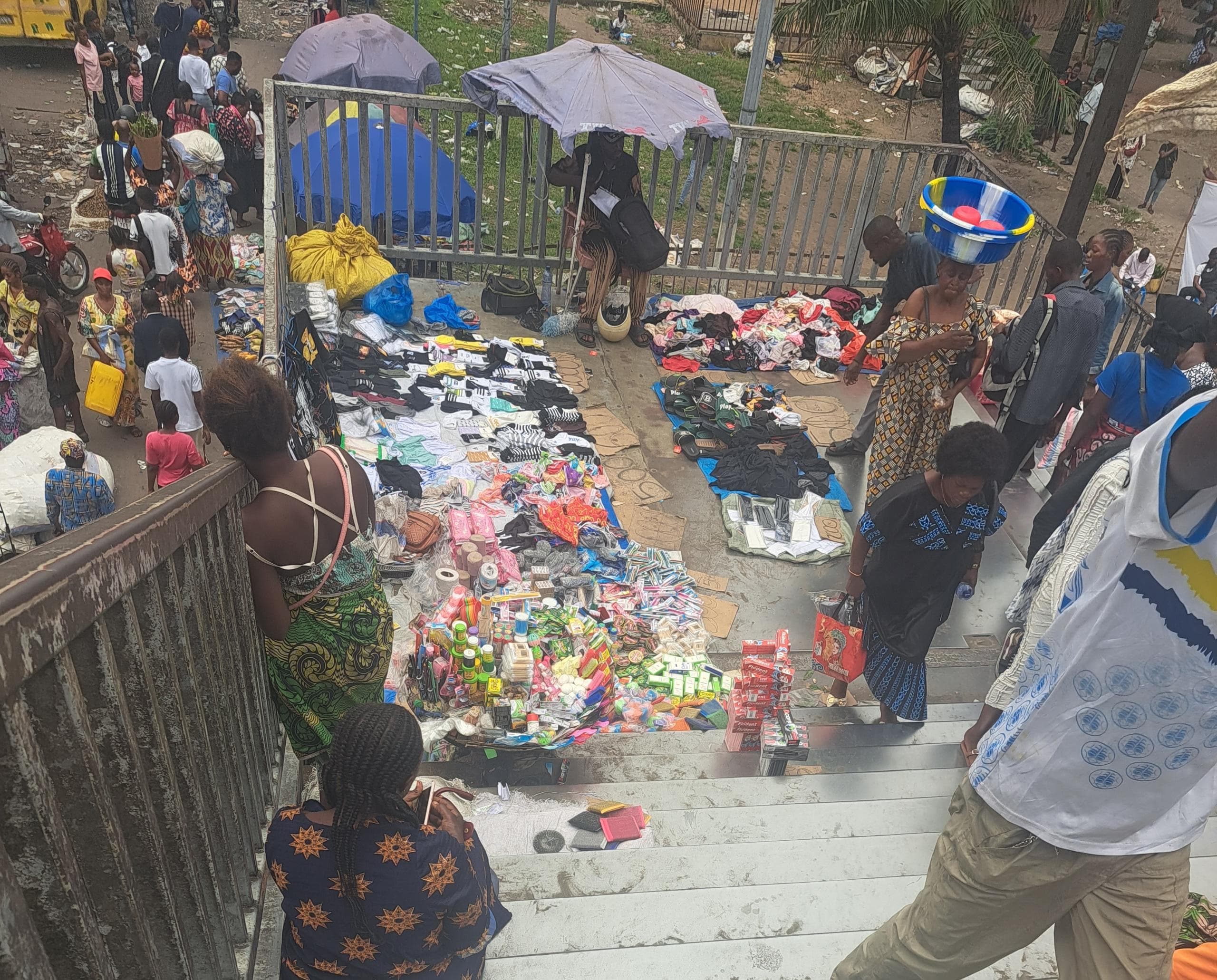 La dérive dépasse le trottoir. Même la passerelle piétonne, censée protéger les traversées, est envahie par le commerce et devient parfois zone grise. Certaines bandes y imposent leur loi, intimidant et rançonnant en plein jour. Entre odeurs d’urine, fumée et danger permanent, les Kinois doivent composer avec une ville qui commercialise chaque mètre carré, souvent au détriment de la sécurité et de la réglementation.