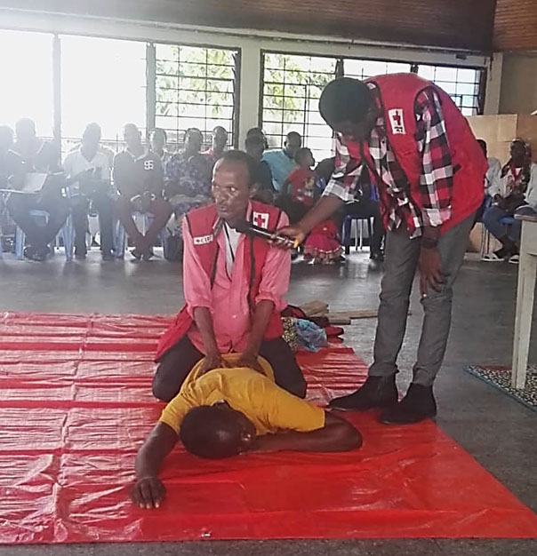 Alliant la théorie à la pratique, l’équipe de la Croix-Rouge a expliqué ce qu’elle qualifie de premiers secours à base communautaire. Il s’est agi des gestes à poser pour sauver les personnes qui se retrouvent dans la détresse respiratoire (asphyxie, étouffement, noyade dans la rivière…).