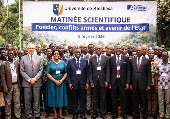 La Faculté des Sciences Sociales, Administratives et Politiques de l'Université de Kinshasa organise une matinée scientifique ce jeudi 5 février, en partenariat avec la Fondation Konrad Adenauer, à Kinshasa.