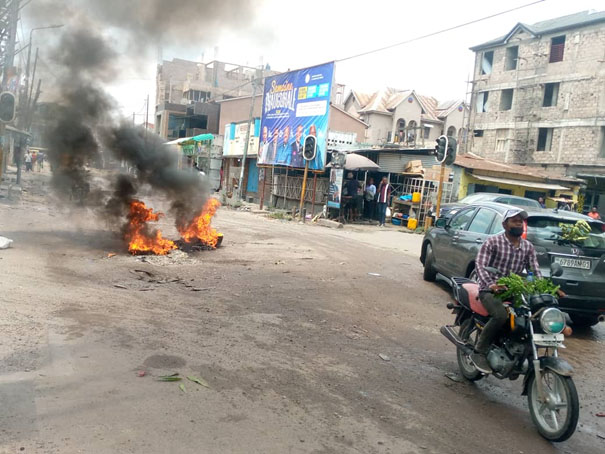 VILLE-MORTE SUITE A LA GUERRE DANS L'EST DE LA RDC, Kintambo: pneus brûlés, routes barricadées, pas de pillages...