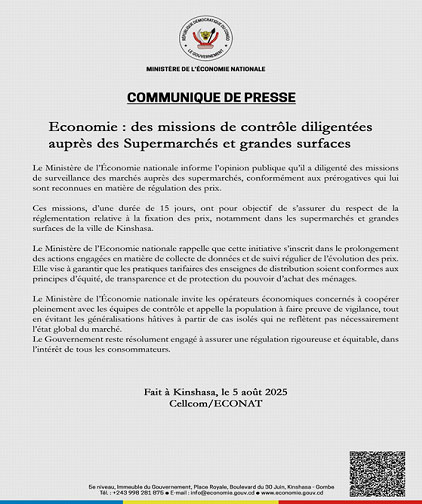 Le Gouvernement réaffirme ainsi sa détermination à assurer une régulation rigoureuse et équitable, dans l'intérêt de tous les consommateurs. Un signal fort en faveur de la protection du panier de la ménagère, alors que le coût de la vie reste une préoccupation majeure pour de nombreux Congolais.