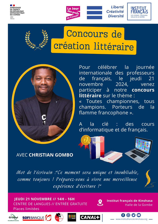 Organisé par le Centre de langues de l’Institut français de Kinshasa, ce concours est destiné à tous les amoureux de la littérature sans aucune exception. L’entrée sera gratuite. Tricya MUSANSI