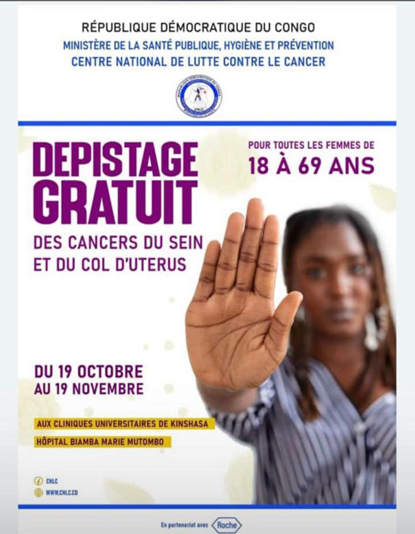 La campagne nationale de sensibilisation et de dépistage gratuit des cancers du sein et du col utérin chez les femmes et les filles dont l’âge varie entre 18 à 69 ans, se poursuit à Kinshasa jusqu’au 19 novembre courant.