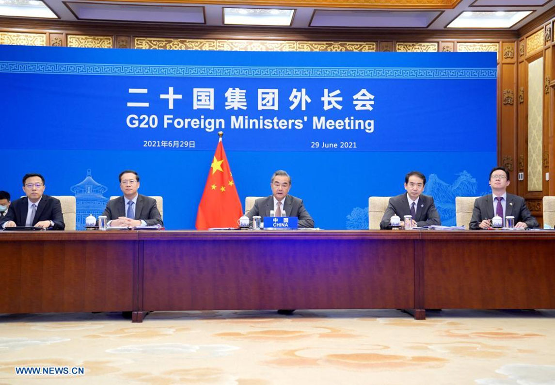 BEIJING, 30 juin (Xinhua) — Le conseiller d’Etat et ministre des Affaires étrangères de la Chine, Wang Yi, a appelé mardi les membres du Groupe des 20 (G20) à promouvoir l’esprit de partenariat et fait des suggestions pour mener des efforts conjoints.