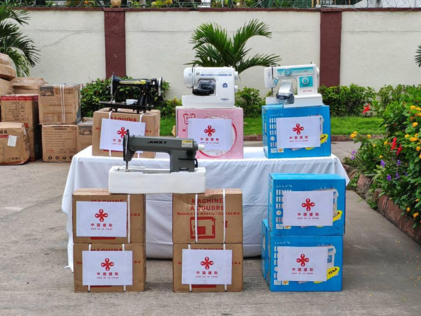 Afin de soutenir le travail de votre fondation, je vous ferai, au nom de la partie chinoise, un don de matériel, comprenant plus de 400 équipements tels que machines à coudre, extracteurs de jus, groupes électrogènes, tables et chaises.