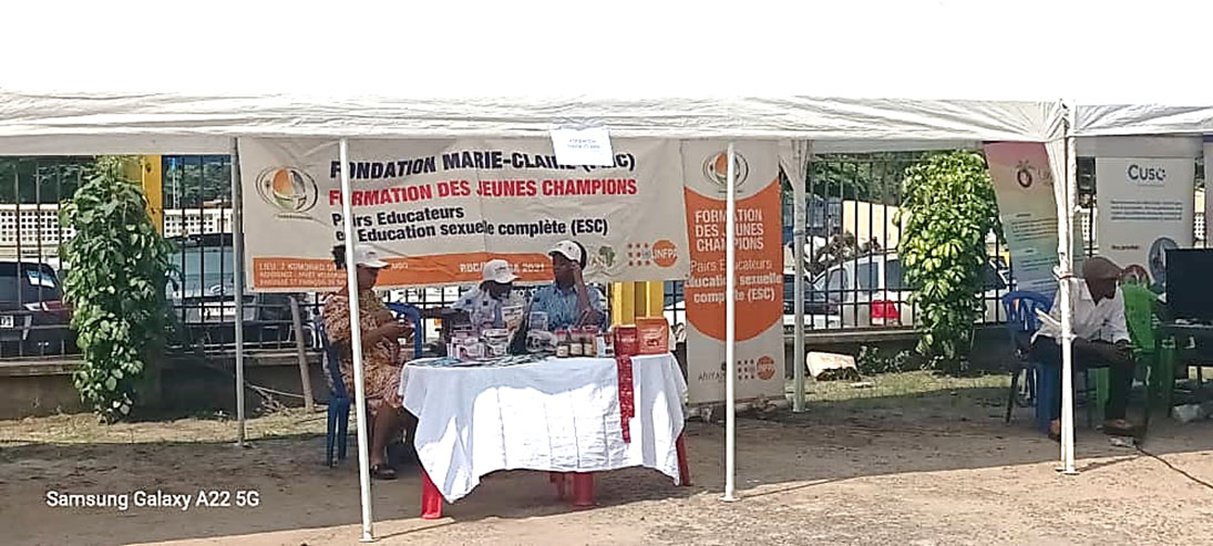 En parallèle des discours officiels, plusieurs organisations, dont l’UNFPA, ont installé des stands au siège du PNMLS. Ces espaces ont servi à sensibiliser le public tout en mettant en avant des initiatives communautaires axées sur la prévention et les soins.