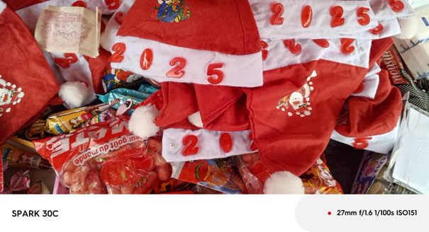 Les enfants «ont sapé comme jamais» façon Gandhi Alimasi Djuma, dit «Me Gims et Stanislas Georges Dinga-Pinto mieux connu sous le nom de Niska, dans leur opus «Sapés comme jamais» ou, encore, ils ont eu l’air endimanché en ce mercredi, Noël oblige. Tout souriant, la plupart des enfants veulent avoir les chapeaux rouge et blanc soit non lumineux, soit lumineux estampillés «Année 2025».