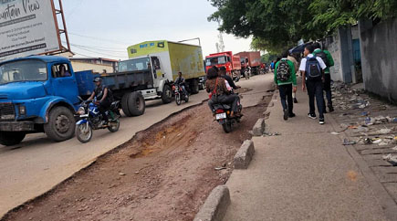 N'en demeure. Ce tronçon, le seul viable qui facilite l'accès à Salongo Sud et à Righini, sans passer par rond-point Ngaba, demeure encore fragile. L'on redoute qu'aux prochaines pluies, cette route se détériore davantage au point de donner du fil à retordre aux transporteurs.