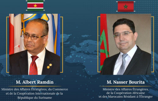 Le ministre des Affaires étrangères, de la Coopération africaine et des Marocains résidant à l’étranger, Nasser Bourita, s’est entretenu, mardi 12 octobre dernier par visioconférence, avec le ministre des Affaires étrangères, du Commerce et de la Coopération internationale de la République du Suriname, Albert Ramdin.