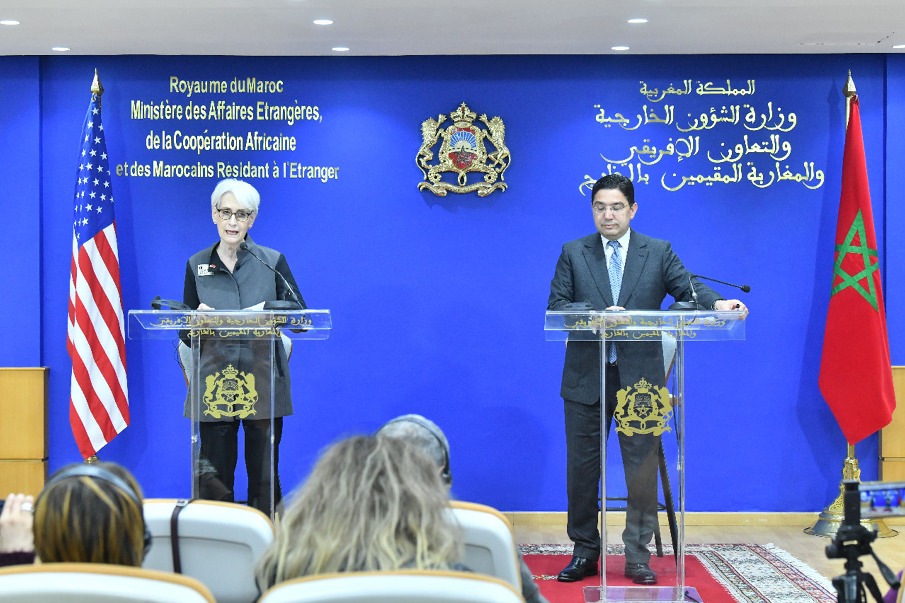 Cette réaffirmation a été mise en avant à l’occasion d’une visite au Maroc de la Sous-secrétaire d’État américaine, Wendy Sherman, au cours de laquelle elle a eu des consultations politiques avec le ministre des Affaires étrangères, de la Coopération africaine et des Marocains résidant à l’étranger, Nasser Bourita et a co-présidé avec lui la session du dialogue stratégique Maroc-États-Unis sur les questions politiques régionales.
