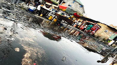 Une bonne partie du quartier baigne chaque jour dans une mare boueuse. Des flaques d'eau persistantes et une odeur nauséabonde rendent le coin invivable. Les automobilistes et les motards avancent au ralenti, créant d'interminables bouchons, tandis que les piétons se frayent difficilement un chemin comme ils peuvent.