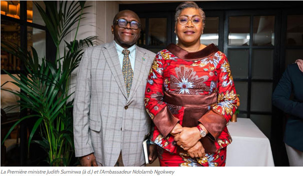 "Cette rencontre (entre la Première ministre Judith Suminwa et l'Ambassadeur Ndolamb Ngokwey), qui s'inscrit dans la tradition de la cheffe du Gouvernement congolais de s'entretenir systématiquement avec les représentants diplomatiques de son pays lors de ses déplacements à l'étranger, a été l'occasion d'aborder des dossiers stratégiques, notamment les enjeux liés aux mines, à la paix et à la sécurité", dit le document.