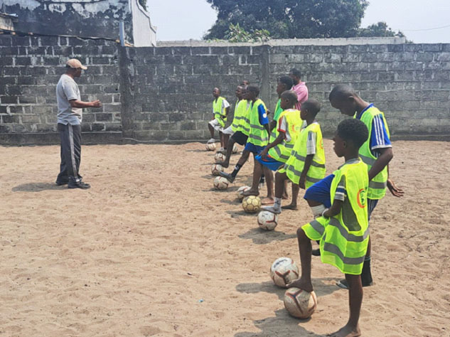 Portant des gilets verts et orange, floqués. ''Lesekuta Centre Sports & Métiers", une vingtaine d'enfants.. de 7 à 14 ans ont tapé sur le ballon, sur un terrain sablonneux au sein du centre, apprenant, pendant plus de trois heures, joyeusement et sans se fatiguer,, le B-A-BA du football sous la direction technique de Louison Lesekuta Moduma, secondé par Dena Lesekuta, un footballeur d'un club kinois censé le remplacer en cas d'empêchement.
